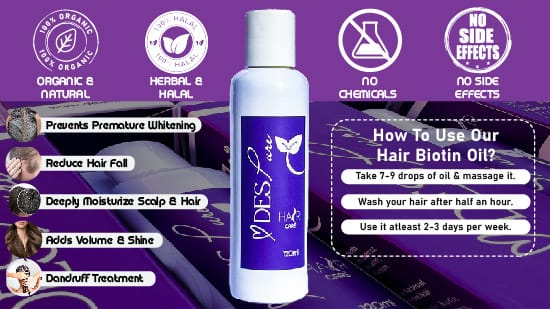 Defy time with every drop! Our exceptionalhair biotin oilgoes beyond mere beauty – it's your guard againstpremature whitening.